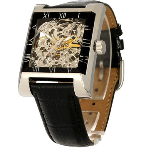 Et puis passez-les aux pointeurs. Montre Gravée au Dos. Boîtier squelette en acier inoxydable Argenté. Longueur du Cadran et Bracelet 21 cm. Montres automatiques.