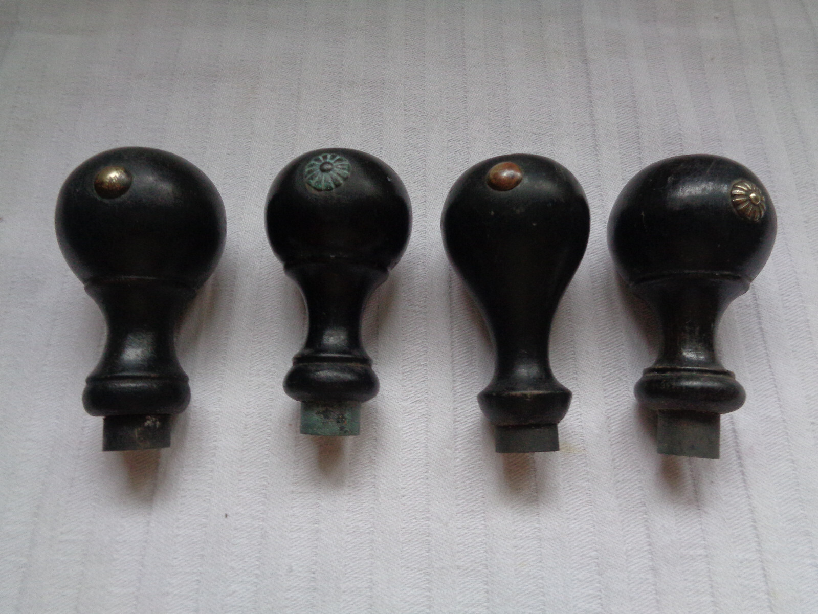 LOT DE 4 ANCIENNES POIGNEES MANCHE EN BOIS NOIRCI POUR TAMPON SCEAU NAPOLEON III