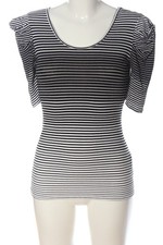 T-shirt blanc rayé noir viscose gros cœur rose T34 Divided (1803035)