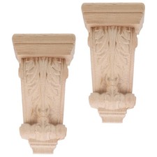 Lot de 2 consoles en bois sculpté - Supports d'étagère murale style colonne