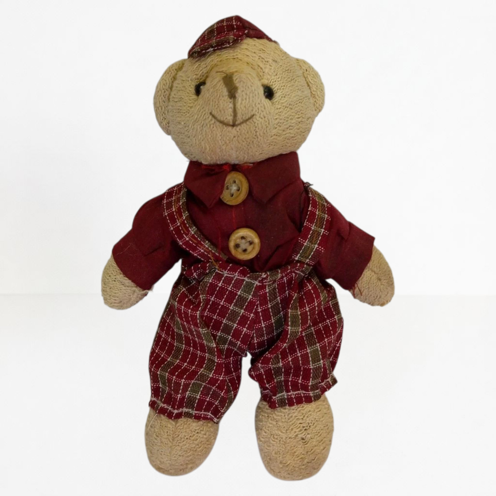 Peluche ours en peluche tissu poupée plaid tenue porte-clés de collection mignon jouet rouge pour enfants. Cette poupée en tissu peluche ours en peluche est un porte-clés mignon et de collection avec une charmante tenue à carreaux.