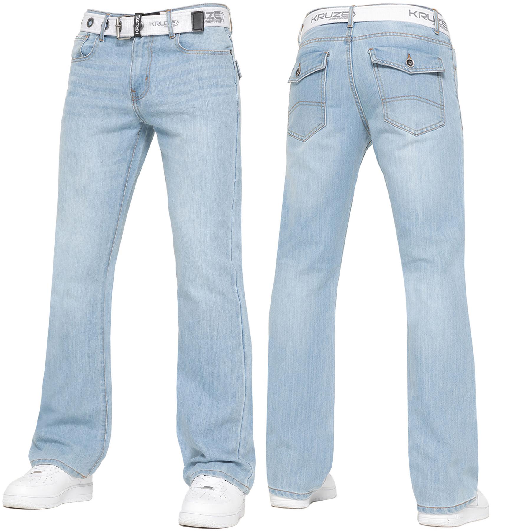 Kruze Hommes Jeans Bootcut Jambe Large Évasé Jeans Ceinture Pantalon UK Taille