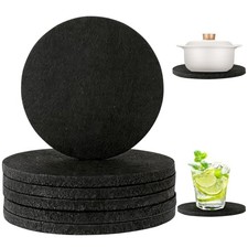 DANS UNE BOITE QUI RESSEMBLE A UNE PENDULE. 6 DESSOUS DE VERRE EN BOIS ET LIÈGE. ILS SE RANGENT. Prof : 8 cm. Larg : 13 cm.
