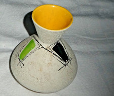 VINTAGE ANNEE 60 VASE SOLIFLORE EN CERAMIQUE EMAILLEE DECOR FLORAL DE MARQUE WR