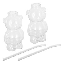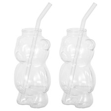 2 Pcs Gobelet Ours Verre Avec Paille En Tasse Honey Bear Straw Cups Glass with