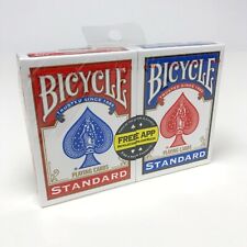 Des joueurs de cartes professionnels aux soirées de jeu de quartier, les cartes à jouer Bicycle font partie de la tradition du jeu. Les cartes de poker les plus populaires au monde. Inclus : 52 cartes + 2 jokers. Taille de la carte : 63,5 x 88,9 mm (2,5" x 3,5"). Poids du deck : 100g (environ). Couleur principale : blanc, bleu. Indice : standard. Cartes à jouer en papier plastifié. Finition sur coussin d'air. Neuf, scellé. Fabriqué aux États-Unis. Produit de vélo 100 % authentique et original. Convient pour : poker, tours de cartes, fioritures. Meilleur vendeur. Nous acceptons les paiements via tous les principaux systèmes (Visa, Mastercard, AMEX, Discover), Google Pay, PayPal et Apple Pay (sur mobile et application eBay). Nous acceptons les paiements via tous les principaux systèmes (Vi.