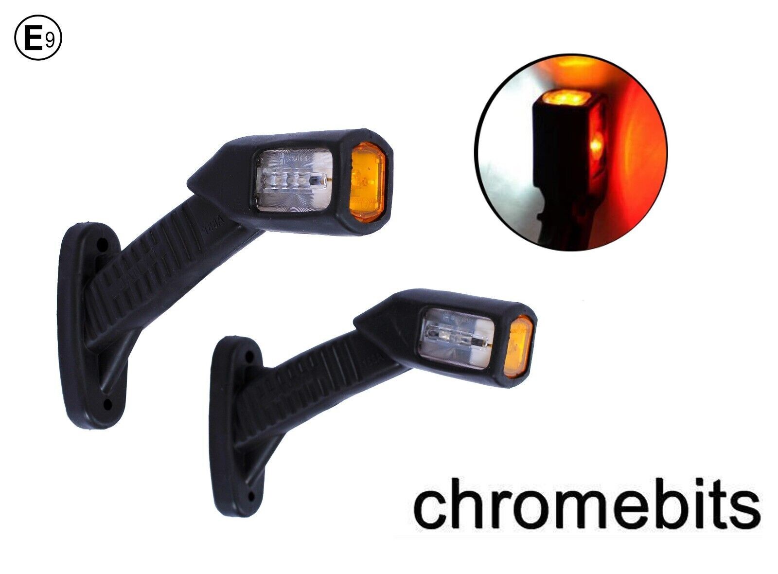 2 x feux de tige latérale à LED blanc rouge Qualité supérieure E- marqué, ce - approuvé, Une paire (gauche et droite) unité LED entièrement intégrée et complète Nouvelle technologie SMD - plus lumineuse et moins consommée Compatible avec tous les véhicules sur 12V et 24V Lumière forte et vive Couleur: rouge, ambre et blanc Matériel: Plastique ABS Base en caoutchouc lourd Afficulatoire, étanche. Dimensions: Hauteur: 180 mm Distance entre les trous d'ajustement: 80 mm Base: 100 mm x 35 mm.