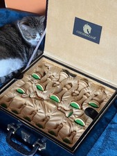Grand jeu d'échecs fait main - plateau de rangement solide 15" et pièces en m...