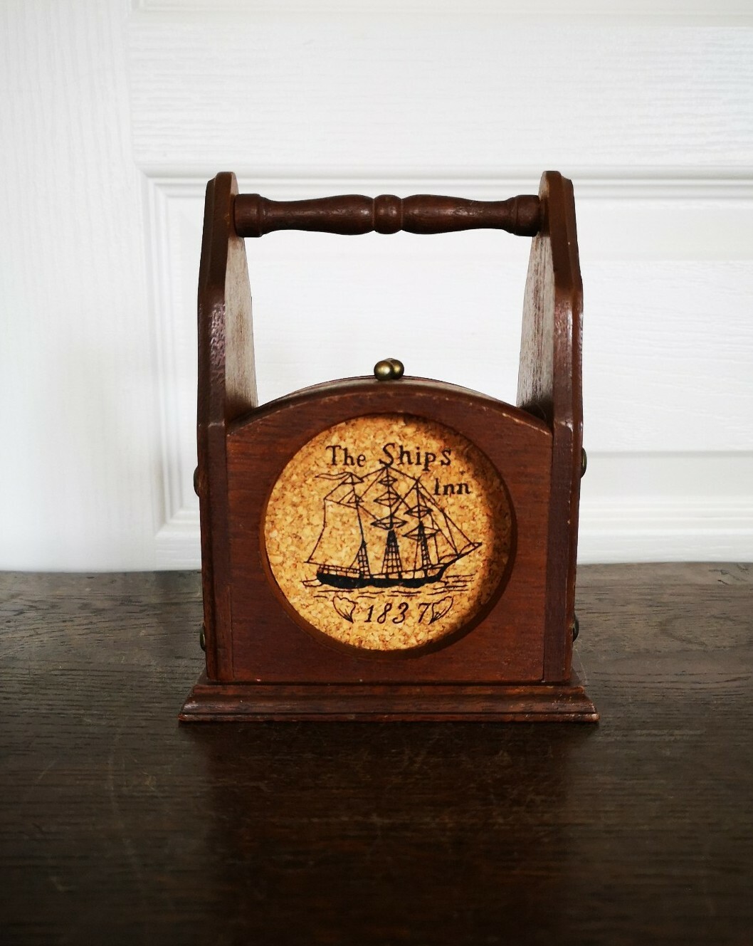 Ancien Vintage Ensemble De 6 Dessous De Verres avec inscription sur chaque sous verre "The Ships Inn 1837" Complet avec son Support transportable facilement. En Bois Made in Tawain Diamètre du sous-verre : 7,5 cm Bon état général (proche du très bon) Voir les photos pour l'état et le descriptif de l'objet. Plus de renseignements par messagerie. Les frais d'envoi à l'international concernent l'Europe et la Suisse. Pour une autre destination, me demander les frais de port avant. Merci