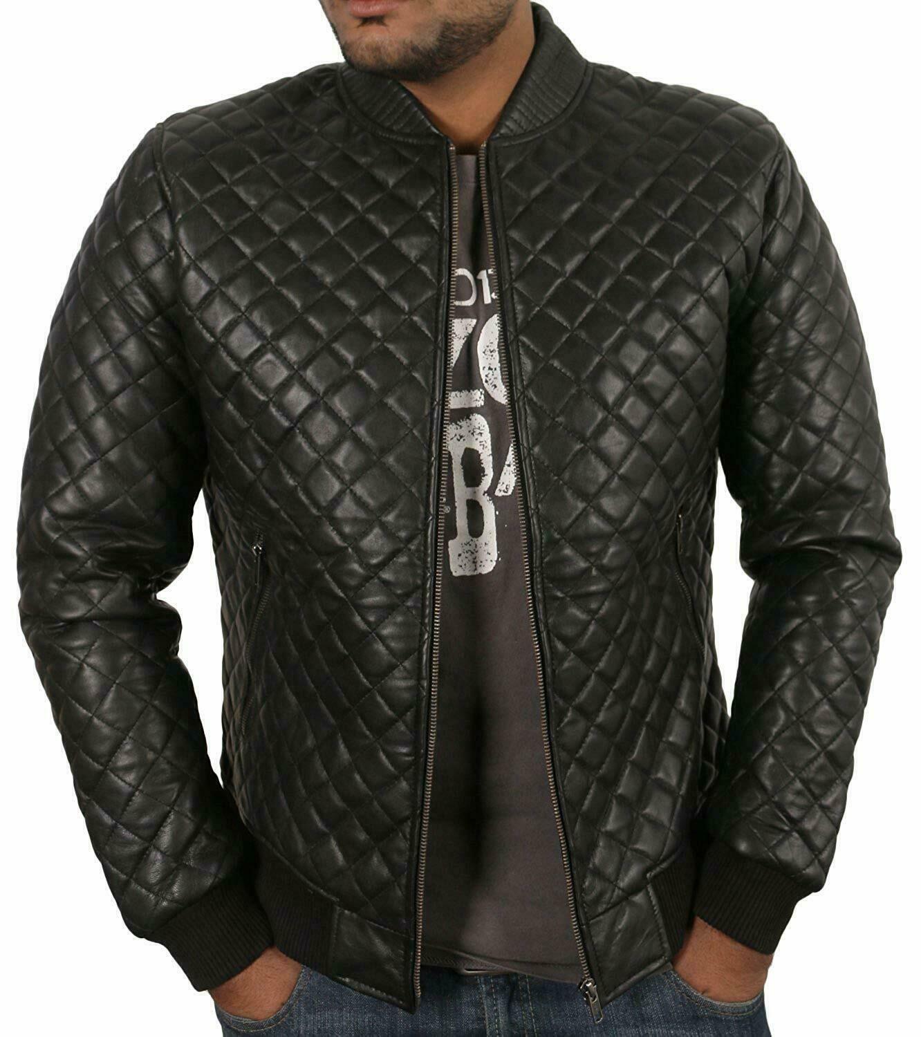 Blouson bomber veste en cuir matelassé en peau d'agneau original pour...