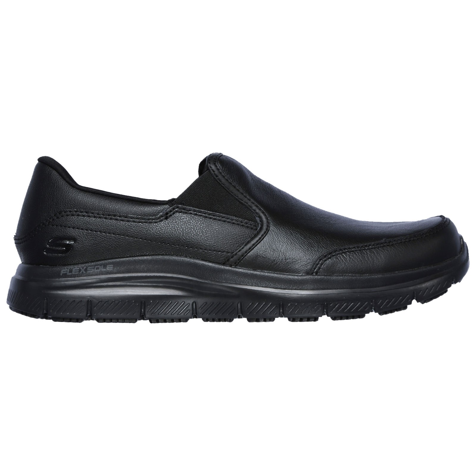 Skechers Chaussures de travail antidérapantes Broadwood pour hommes Style polyvalent et doux, sécurité au pied sûr et confort se combinent dans Skechers Work™ Relaxed Fit® : Flex Advantage SR - Bronwood. Ce style de travail hydrofuge est doté d'une tige en cuir lisse et synthétique avec une semelle extérieure antidérapante et une semelle intérieure coussinée Skechers Memory Foam™. Tige en cuir lisse avec deux panneaux Gore dans une coupe sans lacets Eau et colorants résistants Semelle intermédiaire légère FlexSole absorbant les chocs 1 1/4 pouce talon Détail du logo Skechers® RELATHED FIT® pour un confort spacieux à l'orteil et à l'avant-pied Semelle intérieure confortable et coussinée Skechers Memory Foam™ (SRC)Semelle extérieure antidérapante avec résistance au mazout EN ISO 20347: 2012.