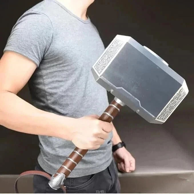 Apportez le pouvoir des dieux à votre collection avec ce1:1 scale Thor Mjolnir. Application: Cosplay, écran, collection, accessoire de film. Matériau : Métal de haute qualité. (Fabriqué à la main / fait à la main - de légères variations peuvent survenir).