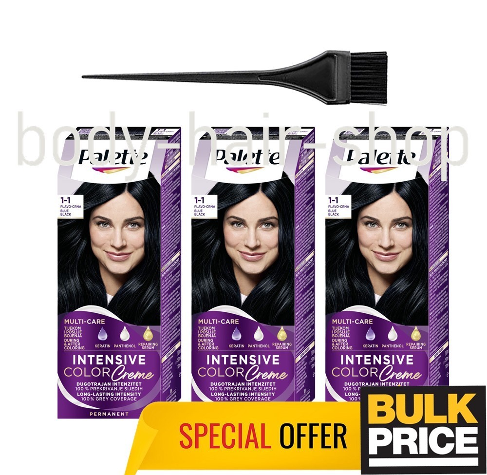 ⚫ Palette Schwarzkopf Intensive Color Creme 1-1 Blue Black - Lot de 3 offres en vrac ⚫ ✨ Deep, Intense Blue Black | Couverture 100 % grise - Résultats de qualité salon ! ✨ Transformez vos cheveux avec les tons riches et ultra-foncés de Palette Schwarzkopf Intensive Color Creme 1-1 Bleu Noir ! Cette teinture capillaire permanente offre un noir profond et froid avec de subtiles nuances de bleu, assurant une couverture 100 % grise et une finition de salon brillante. Infusée de kératine et d'agents revitalisants, cette formule protège les cheveux tout en offrant une couleur durable et résistante à la décoloration qui reste vibrante et intense.