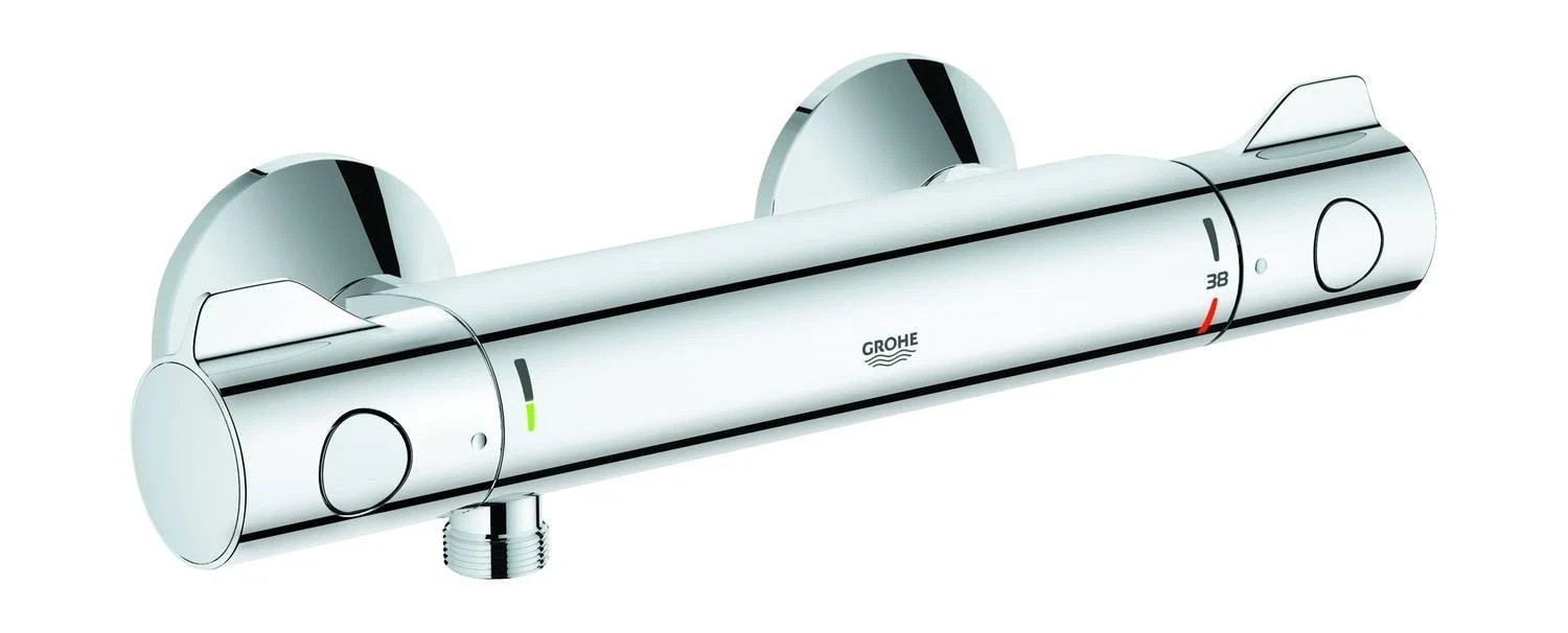 Grohtherm 800 Mitigeur Thermostat bain/douche. Son design cylindrique attrayant en fait un beau choix pour votre salle de bains. Grohe StarLight - Durable, facile d'entretien, brillance chromée. Grohe TurboStat - Fournit une température constante quelles que soient les fluctuations de pression.