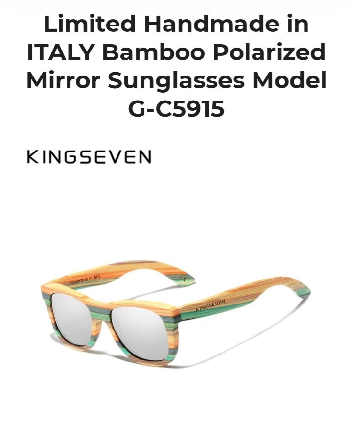 Kingseven Bamboo Polarized Silver Mirror Sunglasses designed in Italy Model...