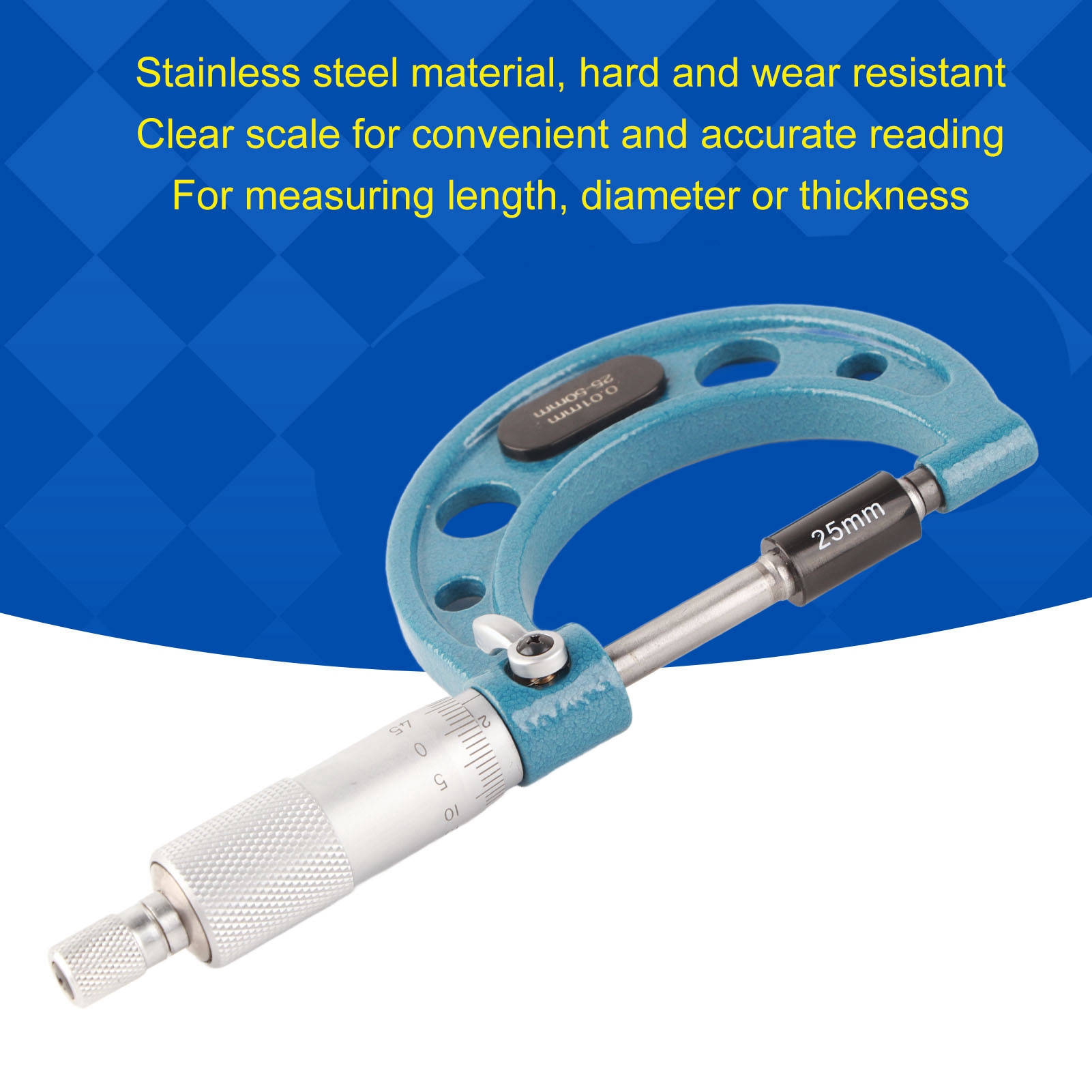 Micromètre Extérieur Outil De Mesure D'épaisseur Haute Précision Avec Clé 0 01