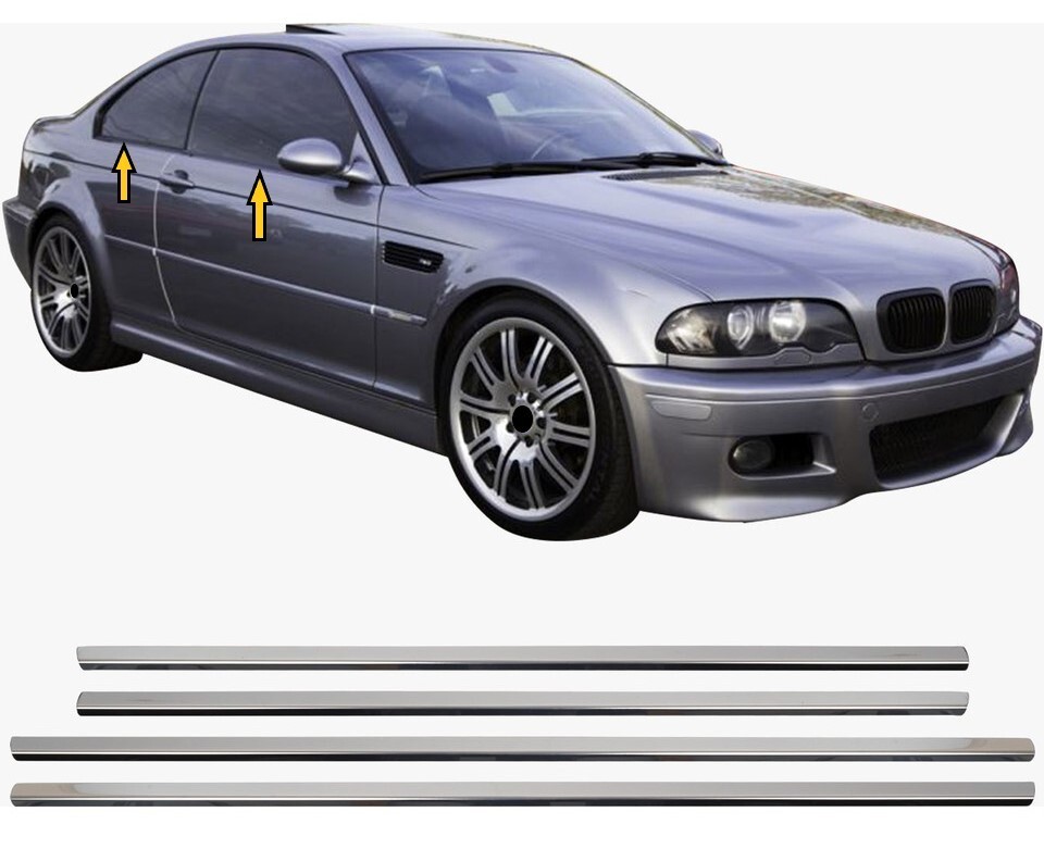 Garniture de cadre de fenêtre couvercle chromé pour série 3 E46 Coupé 1999-2006 4PCS en acier inoxydable. Couvercle chromé garniture de cadre de fenêtre 4 PCS pour coupé série 3 E46 1999-2006. Conçu et fabriqué pour 3 Series E46 Coupe 1999-2006.