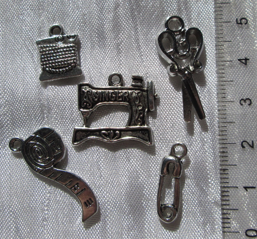 Lot Mix de 5 breloques. Nombre de breloques dans un lot: 5 pièces. COUTURIÈRE-Kit de couture": Bobine de fil, Machine à coudre, Epingle, Ciseaux, Mètre. Vous y trouverez peut-être votre « perle rare».