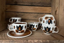 6 tasses à café et leur sous tasse, Arc France, en verre vert, vintage années 70