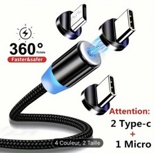 CABLE MAGNETIQUE 3 EN 1 CHARGEUR USB ANDROID TYPE C MICRO USB RÉSISTANT 1M