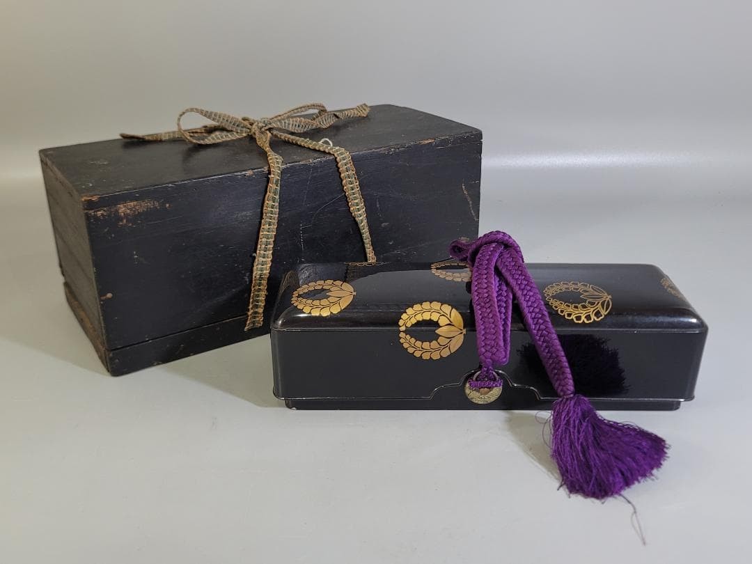 Ancienne boîte à documents japonaise en laque, intérieur Nashiji Maki-e Shogu...