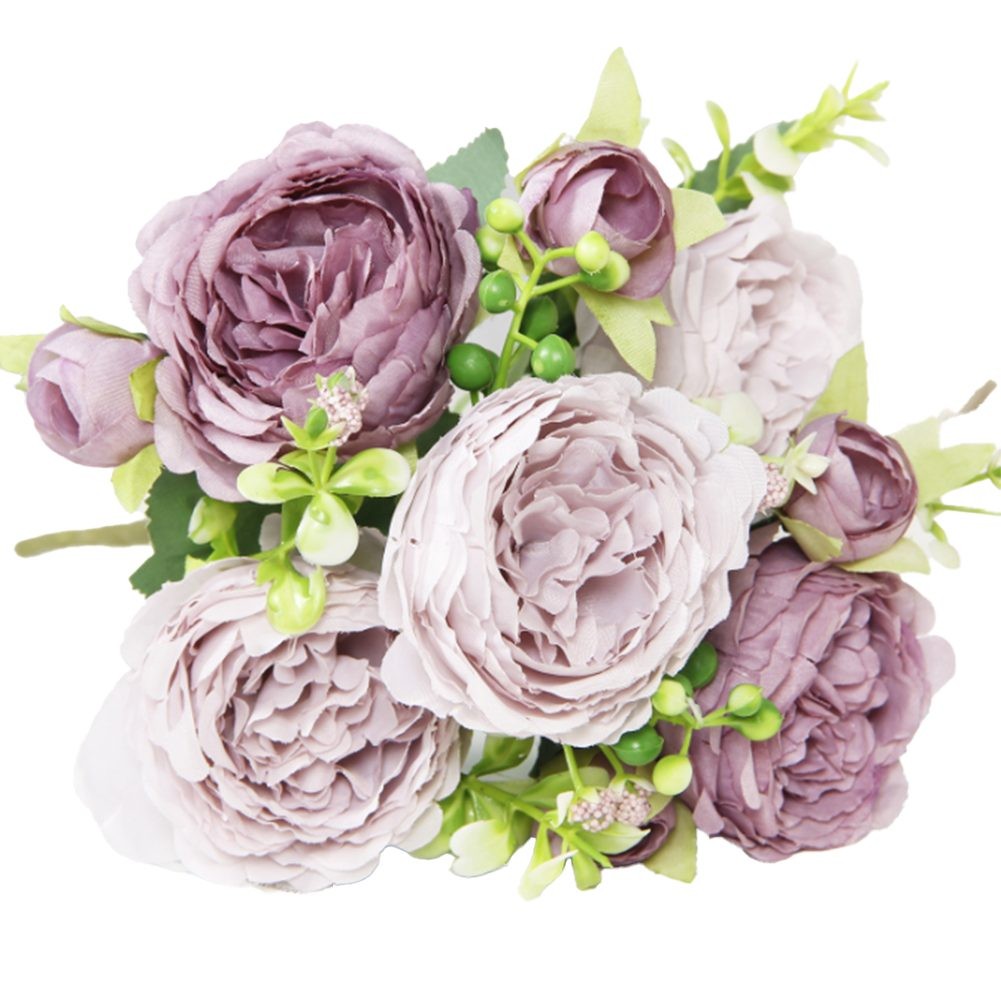 Un bouquet de fleurs artificielles. Matériau pour : Fabriquées en tissu soie et plastique ces roses artificielles sont pour un matériel pour et n'ont pas besoin d'être arrosées ou exposées au soleil pour maintenir leur beauté.