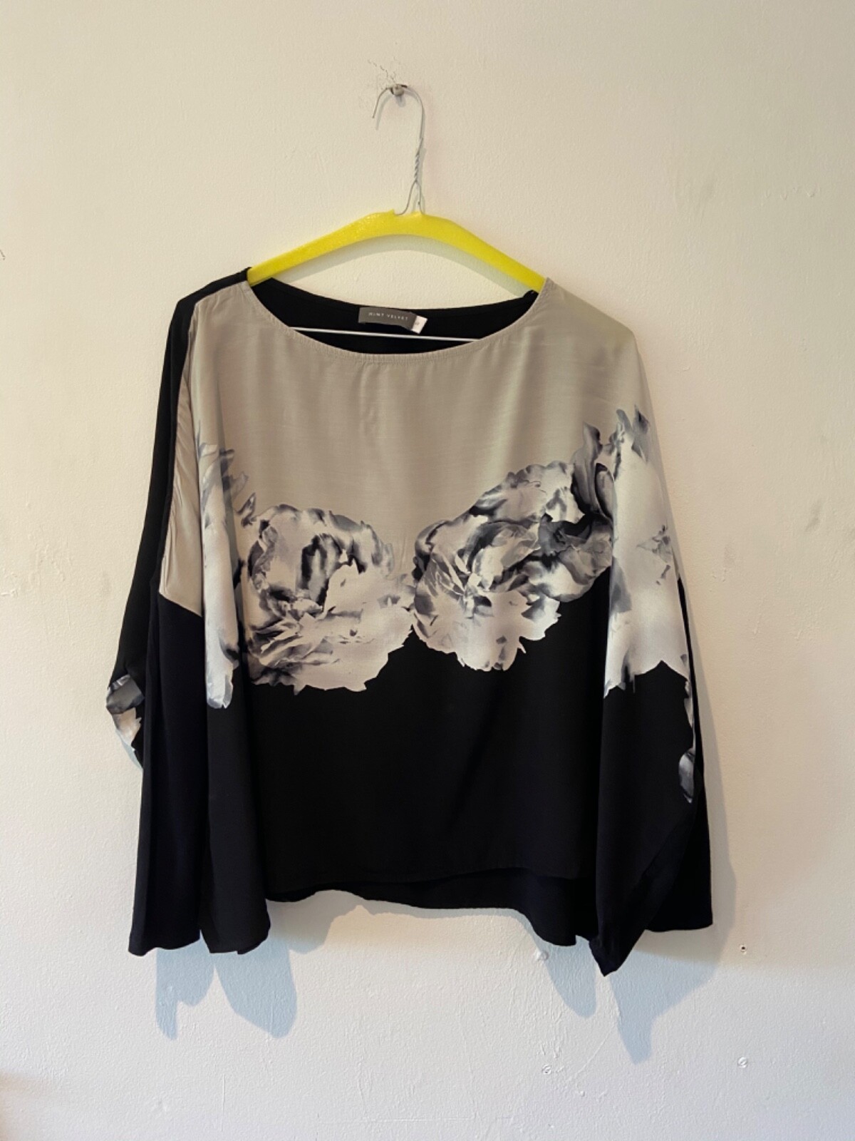 Mini haut velours UK 12 avec motif pétales de rose en noir et crème