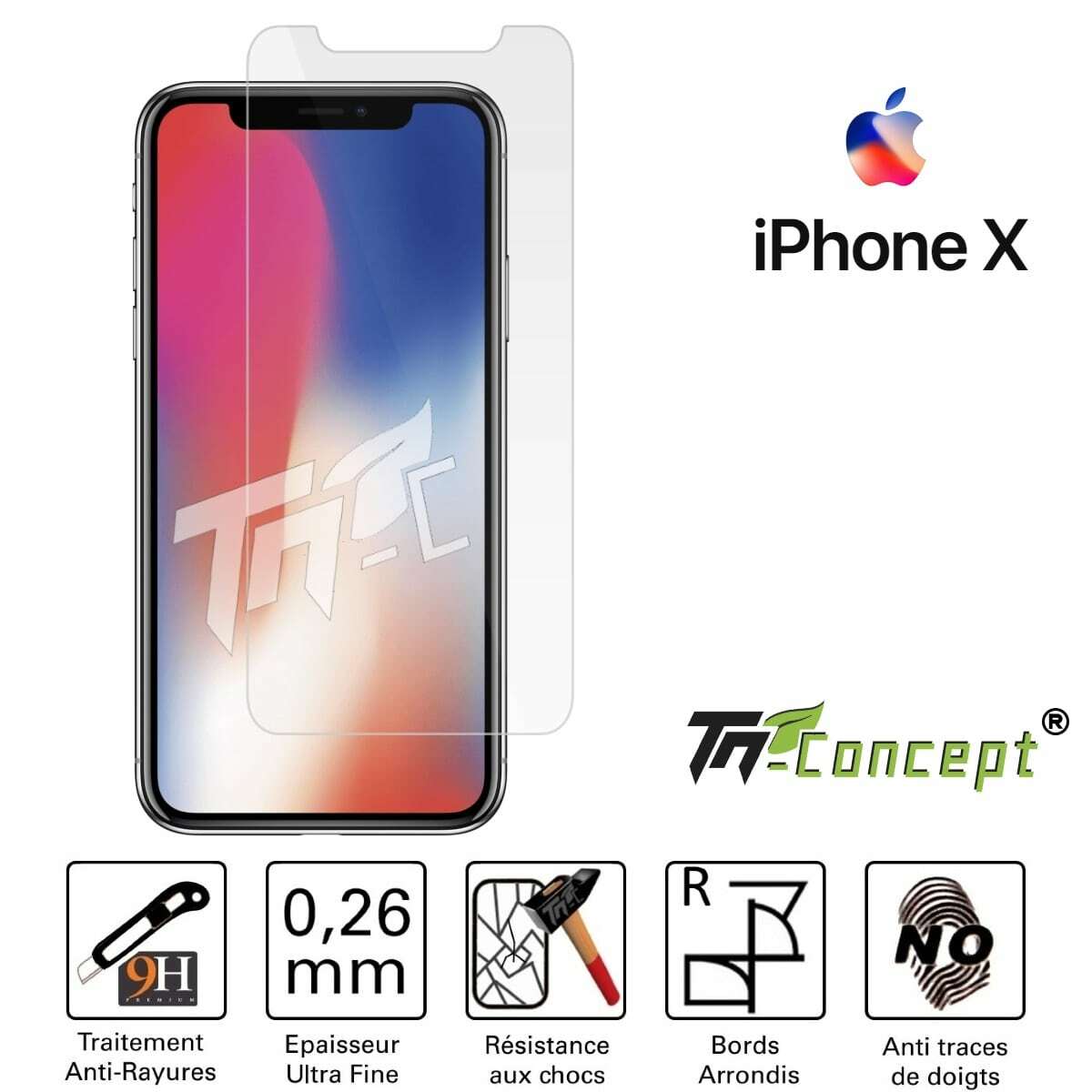 • Verre trempé TM Concept® Premium (Qualité AAA) - matériaux origine Japon (ou Corée du Sud). Modèle(s) de smartphone(s) compatible(s) : Apple iPhone X (iPhone 10).  Caractéristiques de la vitre protectrice en verre trempé.