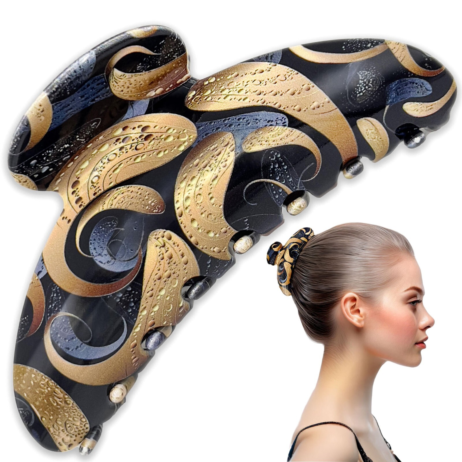 Pince Cheveux Épais femme – Barrette Femme Chic, Doré et Noir, Design Unique