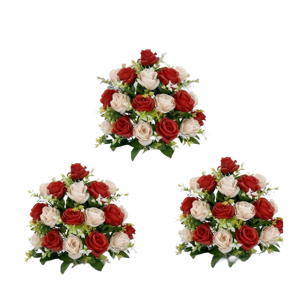 Roses rouges réalistes : dispose de roses rouges réalistes avec des feuilles vertes vibrantes pour un aspect naturel et élégant. Matériau : plastique, tissu de soie, bas fleur (fleur en filet de soie).
