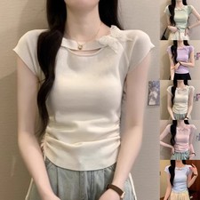 T-shirt décontracté femme couleur unie manches courtes col rond coupe respiran