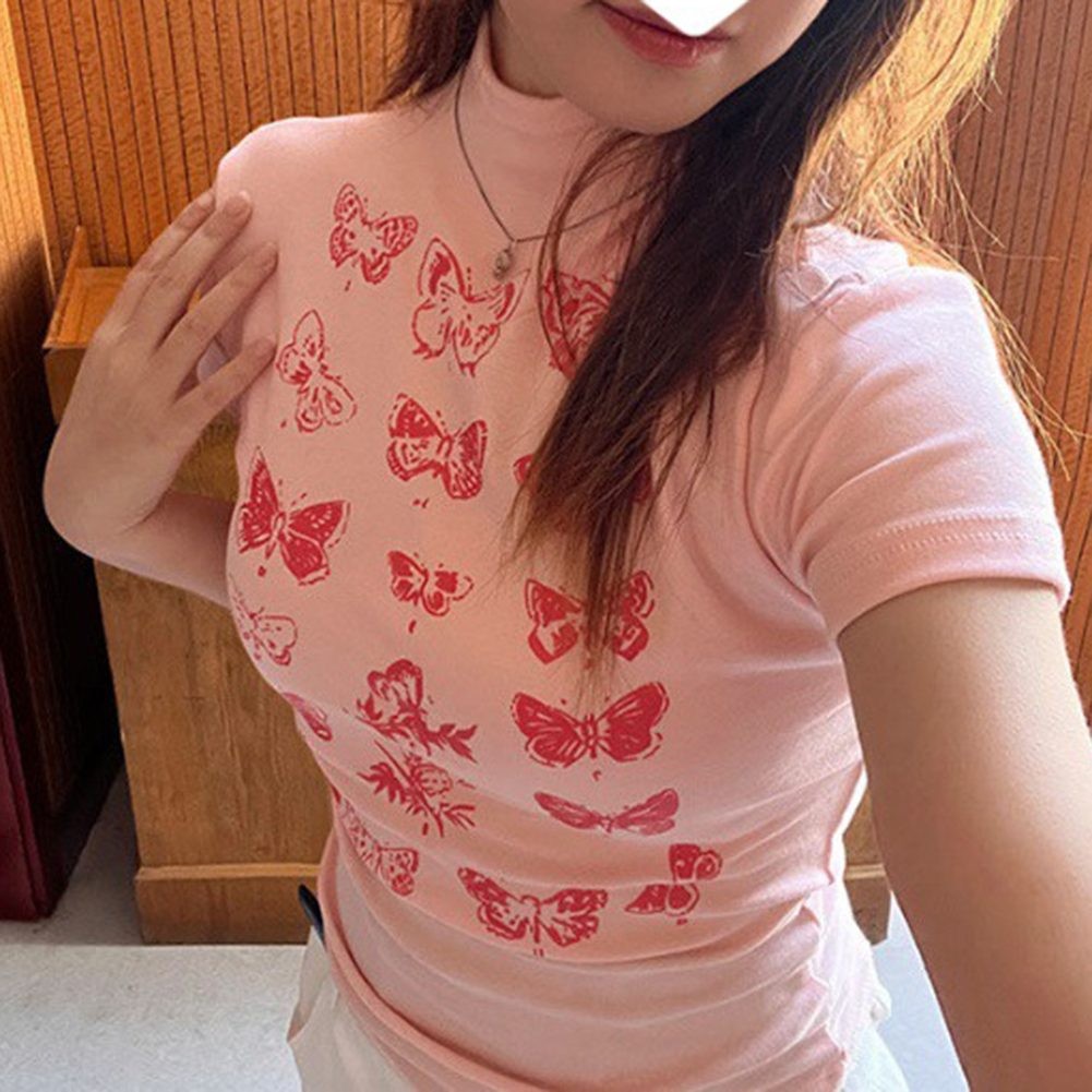 T-shirt été imprimé papillon pour femme à manches courtes et style décontra