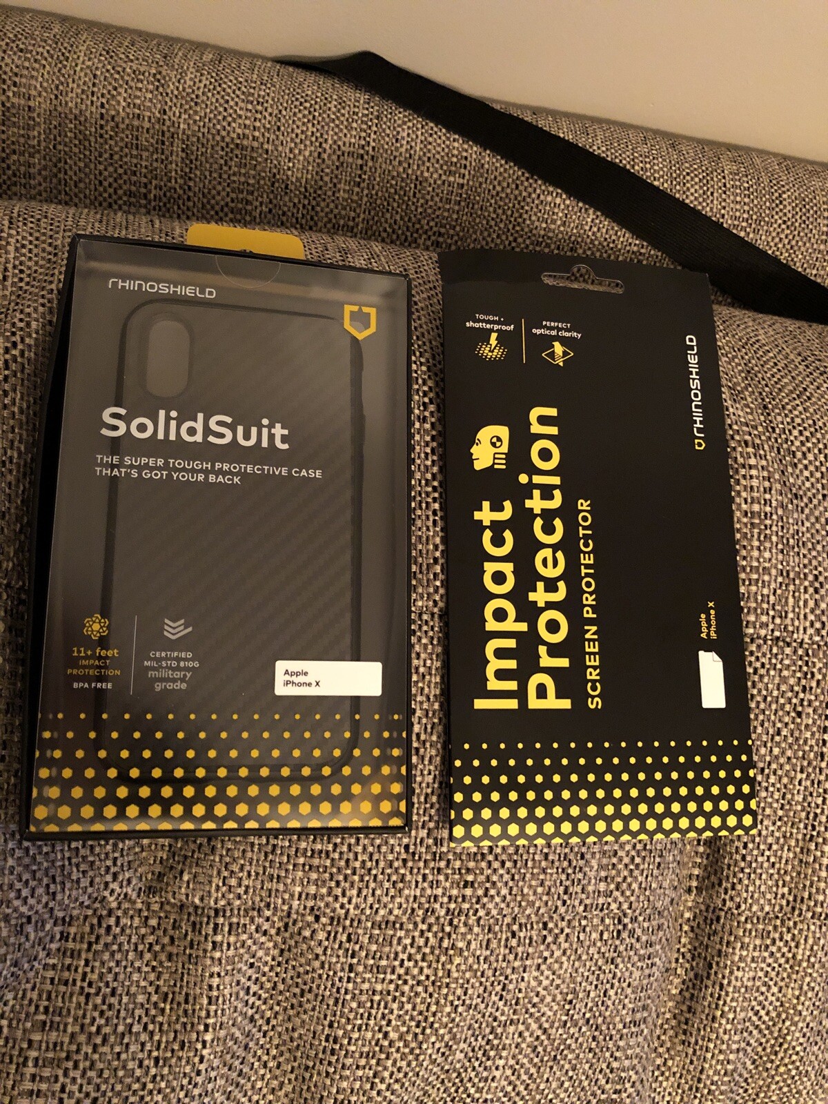 Lot Coque RhinoShield iPhone X Noire SolidSuit et écran de protection contre les chocs NEUF