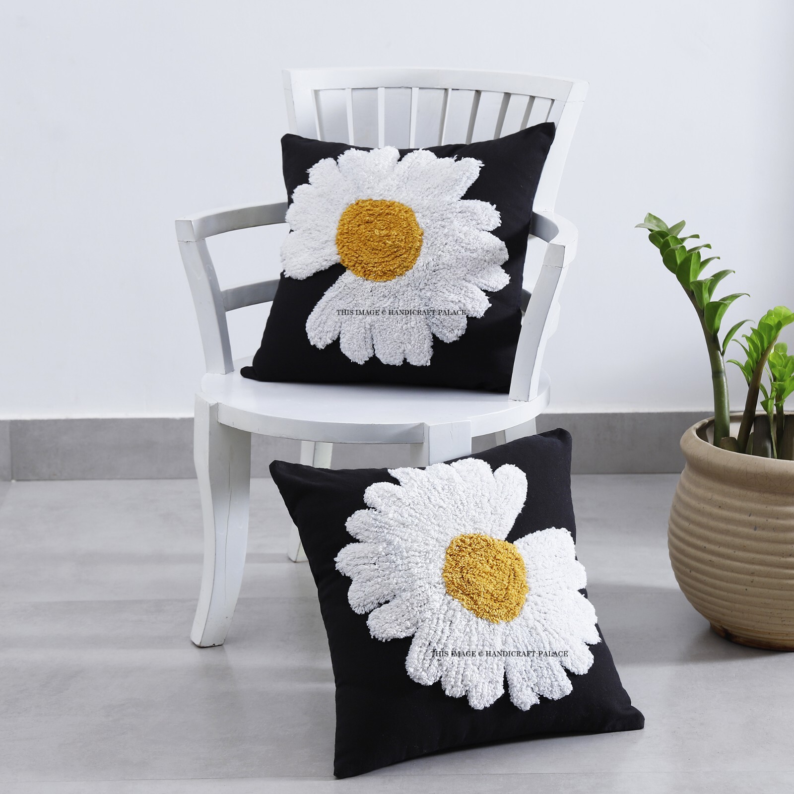 Ceci est une main de tissu de coton tuflé Couverture de coussin. - la face avant a une base noire sur le blanc et le jaune Couleur de couleur touflée Tournesol Modèle. - La couleur du support est noire avec un motif solide. - Cette couverture de coussin a une fermeture à glissière à l'arrière. - Taille: 16 "x 16" pouces (40 x 40 cm) (environ). - Soins de lavage - Lavage normal à la main dans l'eau froide. Il peut également être considéré comme un objet décoratif car ils sont largement utilisés pour la décoration domestique d'une manière très élégante. Ce magnifique coussin d'oreiller ajoutera un style de chaleur et d'élégance à n'importe quelle pièce de votre maison. * Les acheteurs internationaux sont responsables des droits et taxes de leur pays. * Nous expédions l'article dans le mond.