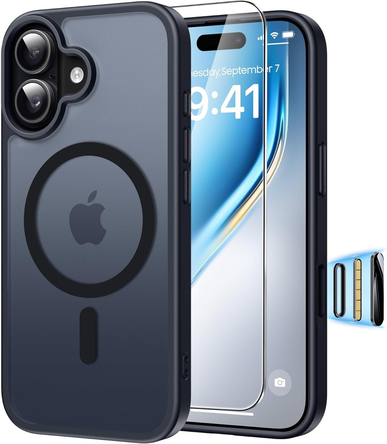 Coque pour iPhone 17 + 2 Verres Trempés Compatible MagSafe Etui Antichoc Noir