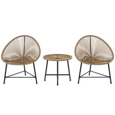 SALON DE JARDIN TROIS PIÈCES : Formé de deux chaises élégantes et d'une table harmonieuse. Ce salon de jardin 2 personnes parfait pour créer un coin bistrot charmant ou un espace lounge chic dans votre jardin - détente et élégance assurées. DESIGN SÉDUISANT : Chaises ovales à l'Acapulco, ornées de cordes en résine tressée synthétique souple avec un motif tissé aéré, favorisant une ventilation optimale pour une sensation de fraîcheur enveloppante.