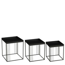 Set de 3 table basse en métal noir/gris au choix plateau amovible forme ronde