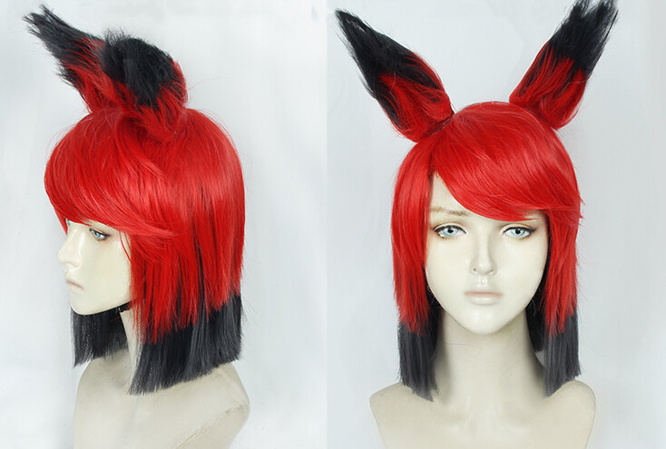 hazbin hotel ALASTOR Cosplay Costumes Perruque Perruque Rouge Noir Red Black