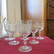 Lot de 6 verres à vin et 5 verres à eau CRISTAL D’ARQUES MODÈLE LOUVRE. Les verres à vin ont leur boîte d'origine. Hauteur verres à vin :13,5cm. Hauteur verres à eau :15,5cm. Les verres sont en bon état.