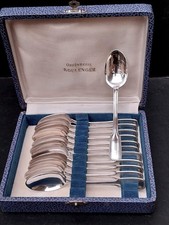 En métal argenté " ERCUIS ". LOT de 12 CUILLERES à dessert.