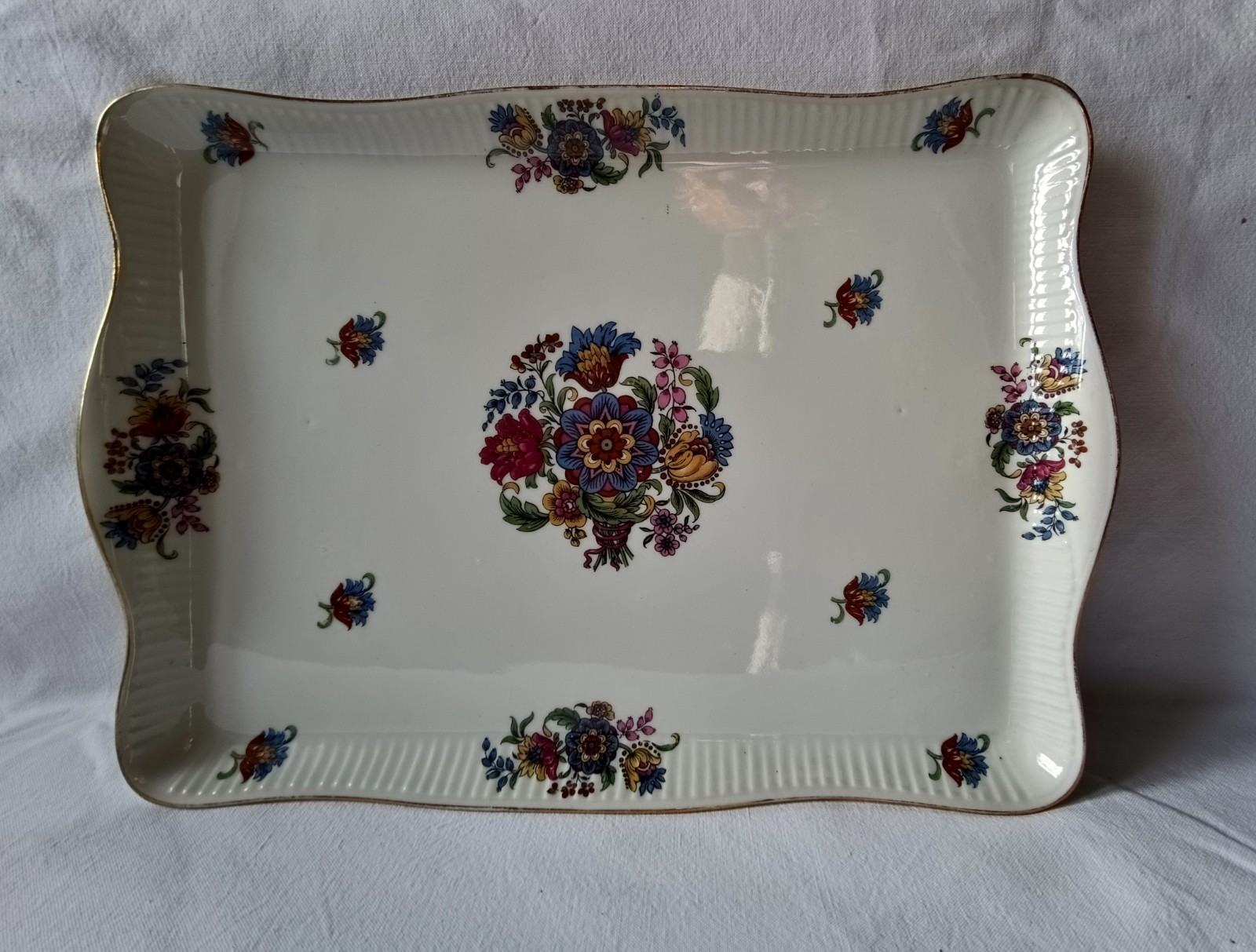 Cet ancien plateau en porcelaine, Limoges. Décor de fleurs et bouquet. D'un très bel effet.