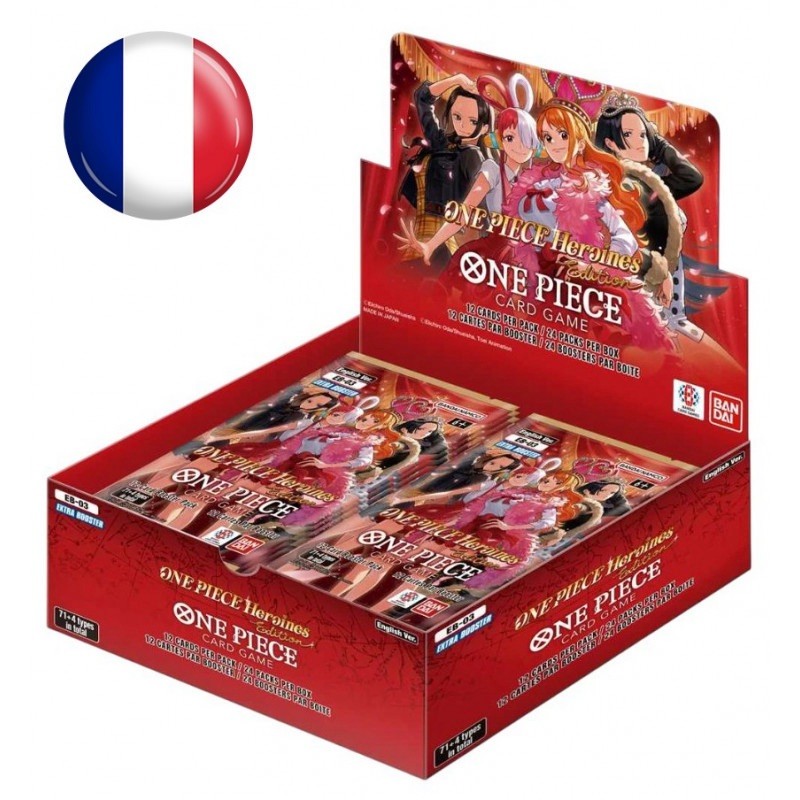 ONE PIECE EB03 DISPLAY FR - HÉROÏNES EDITION FRANÇAIS 🇫🇷 PRÉCOMMANDE. One Piece TCG - Display FR EB03 : Héroïnes Édition 24 Boosters Display Scellée Français Display One Piece EB-03 : Heroines Edition est un coffret exceptionnel dédié aux personnages féminins les plus cultes de l’univers One Piece. Avec 24 boosters de 12 cartes, cette édition met en lumière des figures emblématiques comme Nami, Nico Robin, Boa Hancock et Vivi, ainsi que des cartes rares comme Uta en carte Manga. Ce coffret est une pièce maîtresse pour les collectionneurs et les fans, offrant des illustrations exclusives et des cartes ultra-rares garanties. Livraison estimée le : vendredi 20 fév 2026