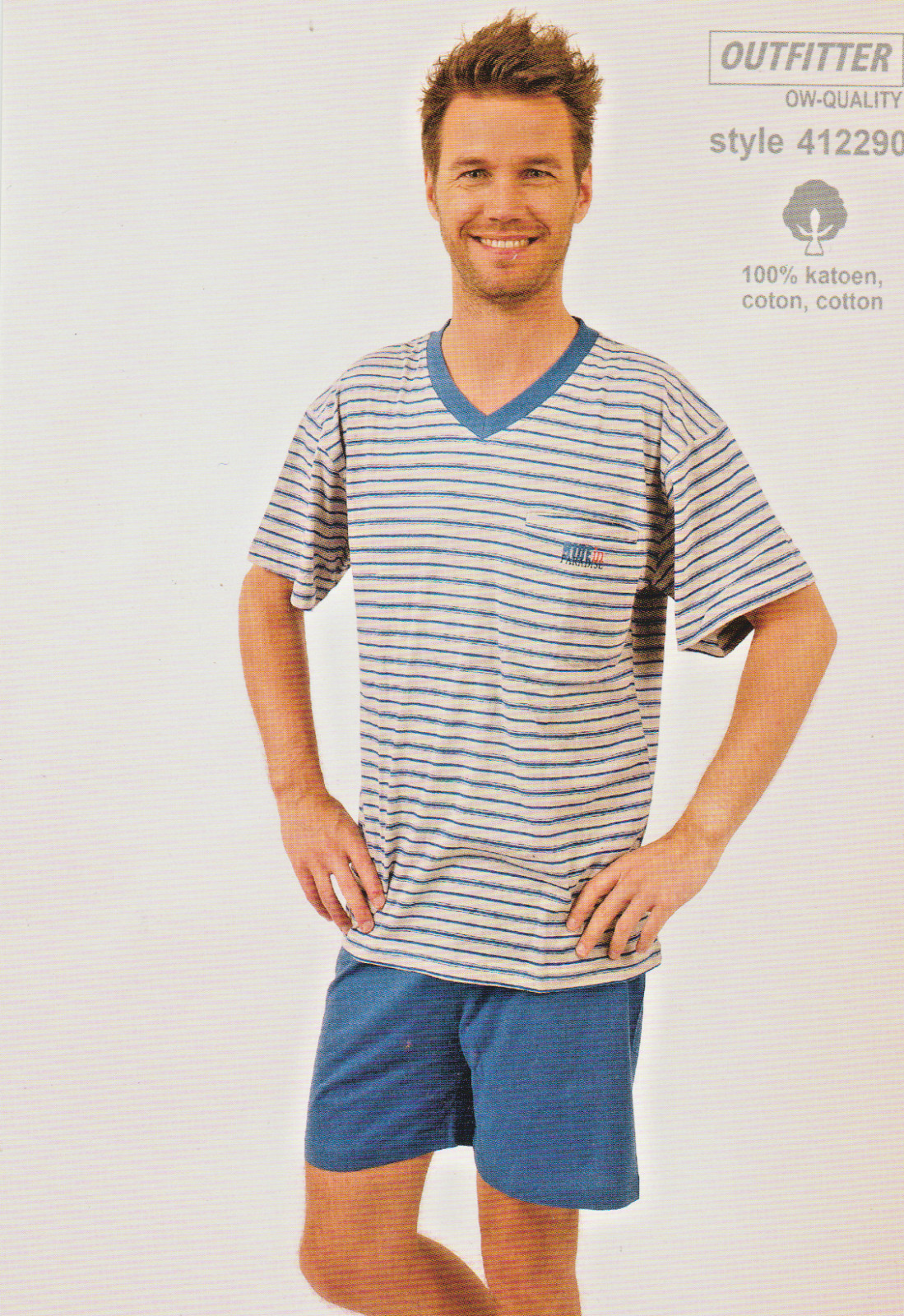 PYJAMA SHORT HOMME 100 % COTON JERSEY COL V + 1 POCHE MARQUE BELGE : OUTFITTER