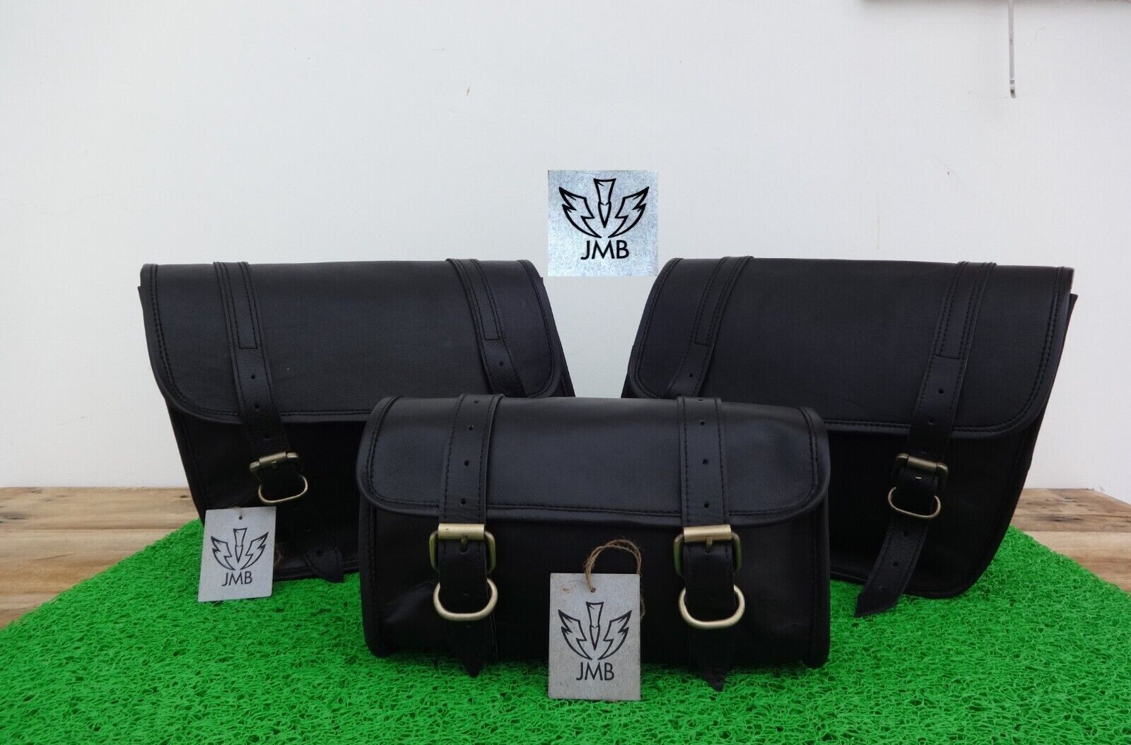 3 sacoches sacoches de selle de moto en cuir noir véritable sacoche à outils ...