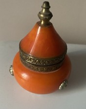 ANCIENNE PETITE BOITE EN FER BLANC. Elle est en bon état, un peu d'usure d'usage bien sûr mais sans gravité (mini rayures, quelques petits manques de peinture ici ou là, peu visibles). - bon état. - taille : 8 cm x 3,5 cm x 1 cm (hauteur).