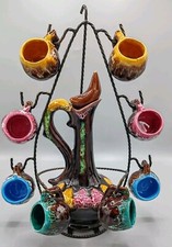 Superbe service à liqueur Vallauris, signé Maguyray sous la carafe et sous le plateau. Composé d'un plateau, une carafe avec son bouchon et 5 gobelets.
