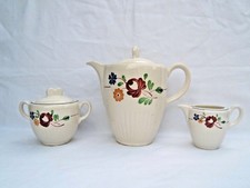 Motif Roses. Porcelaine fine. Beau service ancien en très bon état. Crémier de 11 cm de haut. Grande Verseuse de24 cm de haut. Envoi rapide.