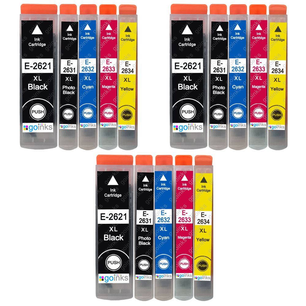 15 Cartouches d'encre pour Epson T2621 T2631 T2632 T2633 T2634 (T2636) non-OEM