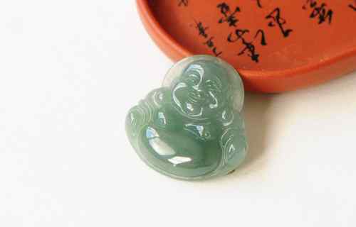 Pendentif Bouddha Rieur en Jade Vert semi-Translucide