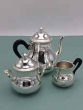 Ancien service à café de l'époque ART DECO. Marquage "FRANCE". Hauteur cafetière 20 cm /crémier 10,5 cm / sucrier 10cm. En parfait état puisque n'ayant pas servi. Couvercle unique sur la cafetière.